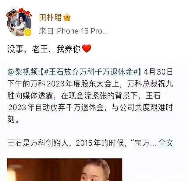王石不再隐忍,正面回应婚变风波,称夫妻无需合体,精神状态回勇如果说娱乐圈的瓜吃到最后总归得落到生活本身,那豪门的婚姻,永远是网友最爱围观的“连续剧”。尤其像王石和田朴珺,年龄差30岁,从最初的官宣就自带争议体质。